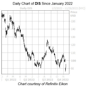 Furthermore, the security's Schaeffer's Volatility Scorecard (SVS) sits at a high 97 out of 100, meaning Walt Disney stock has exceeded option traders' volatility expectations in the last year. Our recommended January 2023 105-strike put has a leverage ratio of -6.18 and will double in value on a 13.9% drop in the underlying shares.