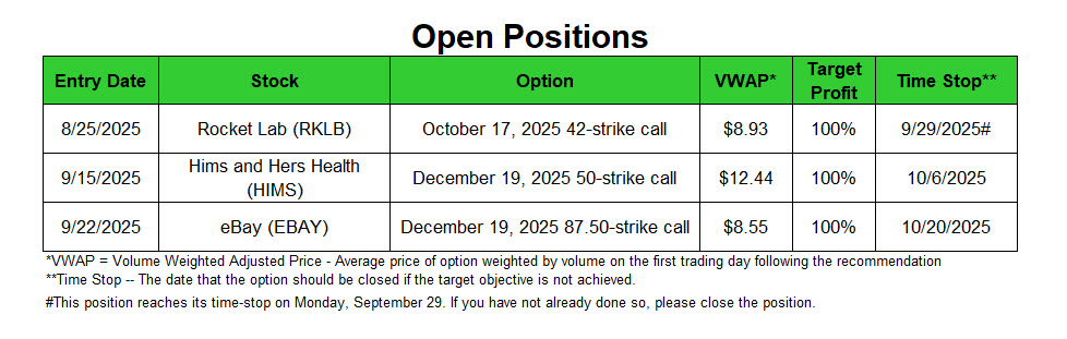 - The Rocket Lab (RKLB) October 17, 2025, 42-strike call reaches its time-stop this Monday, September 29. Close the position at a limit price within range of the current market price when you place the order.
